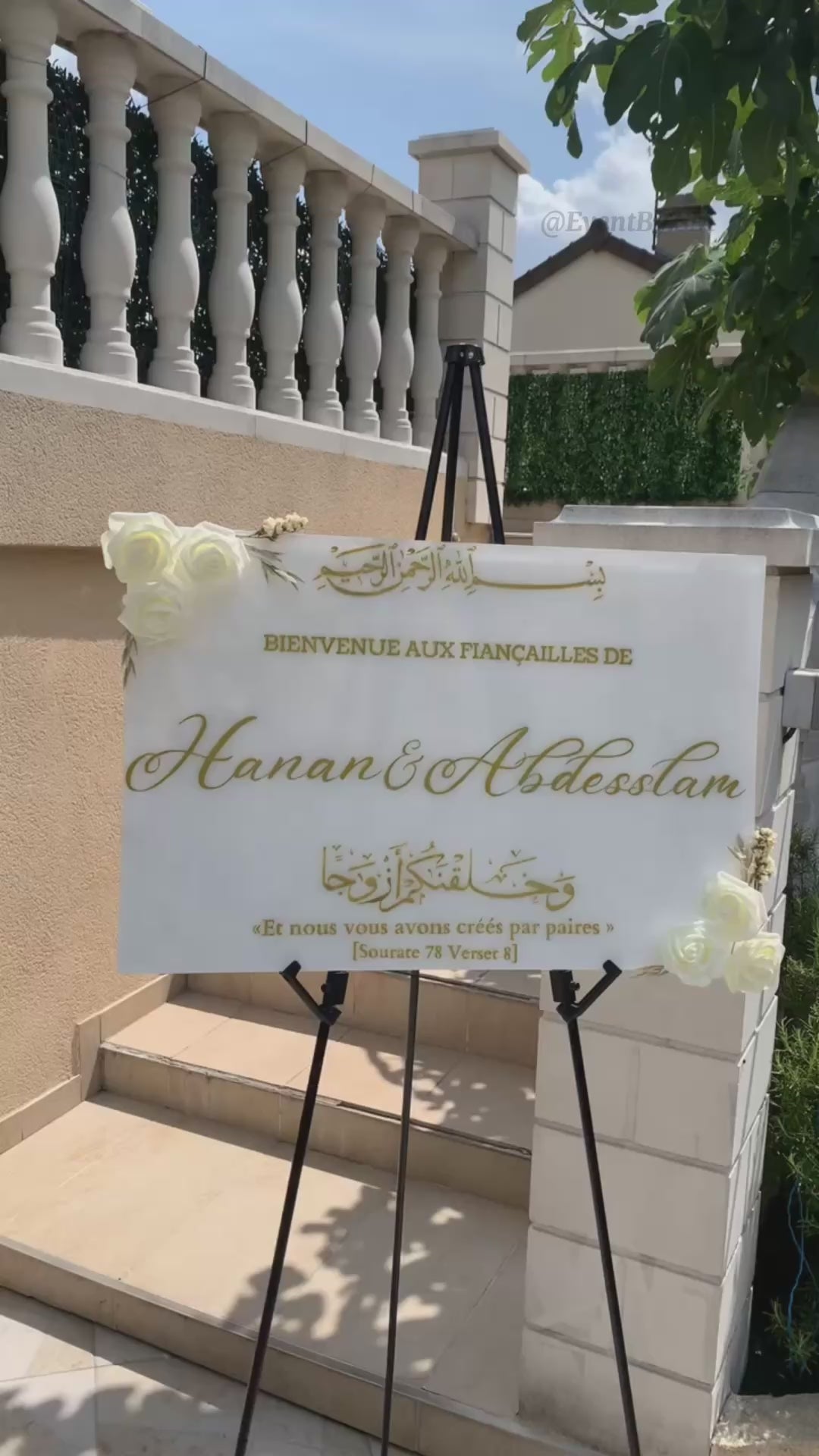 Ce panneau de bienvenue floral ajoute une touche d'élégance à votre événement de fiançailles. Son design unique accueille vos invités avec élégance, laissant une impression mémorable. Parfait pour une touche de charme et de sophistication lors de vos fiançailles.