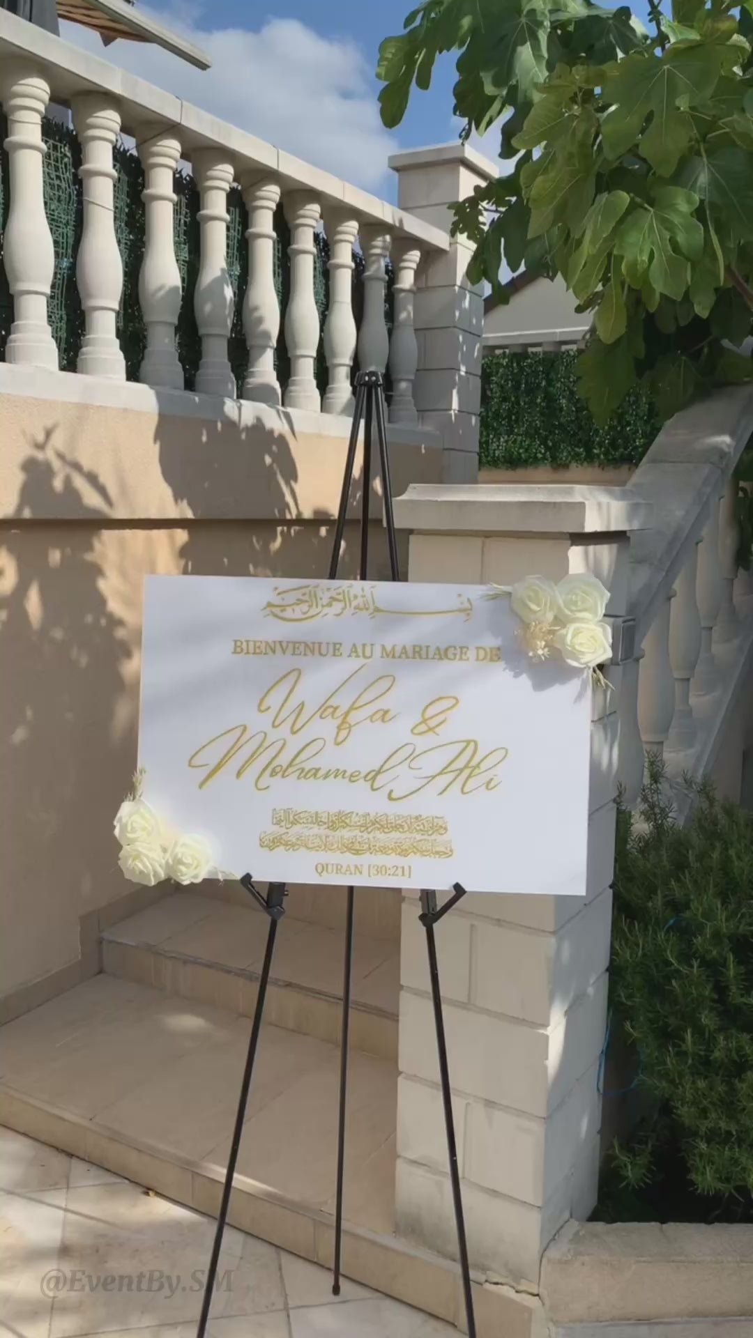 Accueillez vos invités avec élégance grâce à ce panneau de bienvenue floral. Son design unique et spirituel, avec le verset 21 de la sourate Ar-Rum, ajoutera une touche mémorable à votre entrée. Faites l'expérience d'un accueil chaleureux et spirituel avec le panneau Floral.